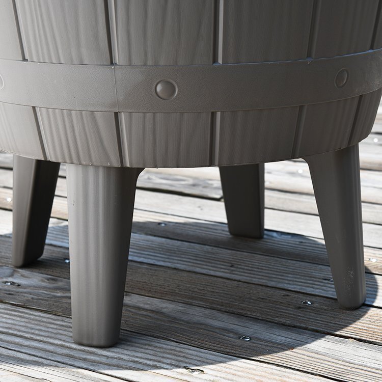 - Модный дизайн под дерево сочетается с любым декором садовой мебели.