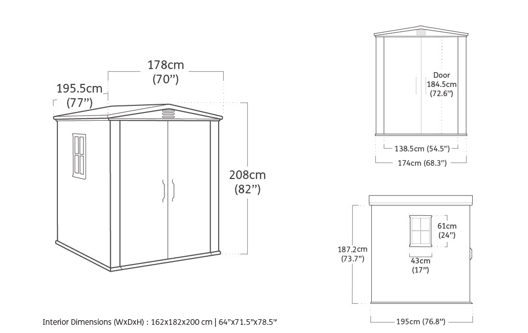 - Внешние размеры по крыше (ШхГ): 177.8 х 195.6 см