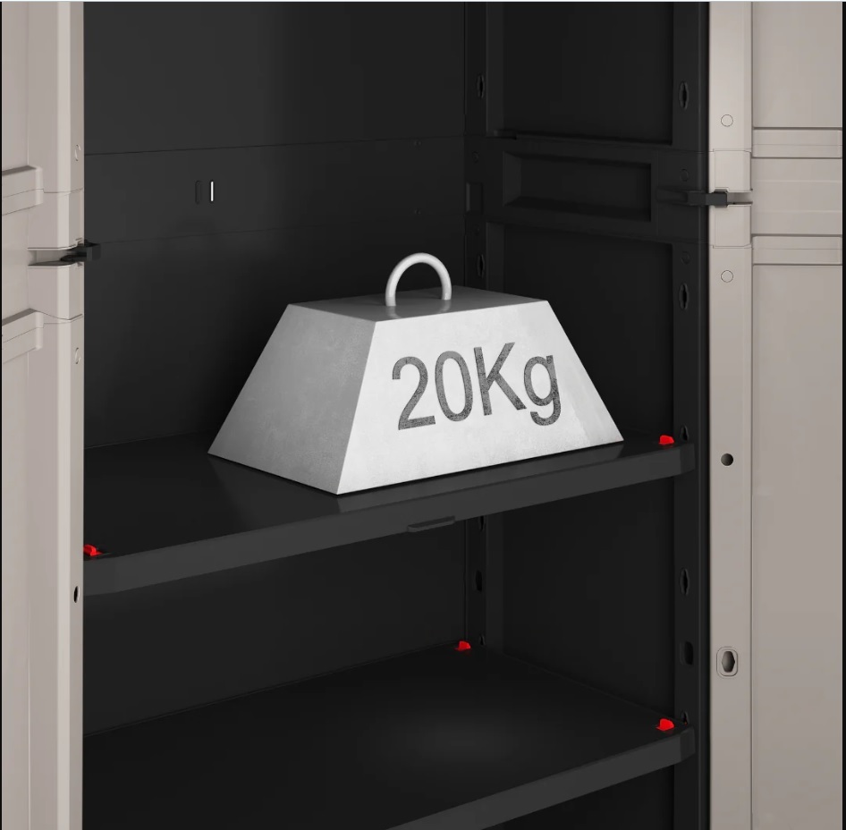 - Регулируемые по высоте 4 полки с грузоподъемностью по 20 кг (сертификат TÜV)