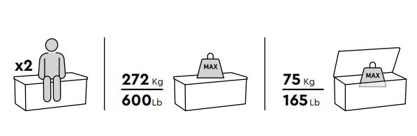 - Высокая прочность – сундук достаточно прочный для внешних нагрузок, можно использовать в качестве скамейки - выдержит двух взрослых!