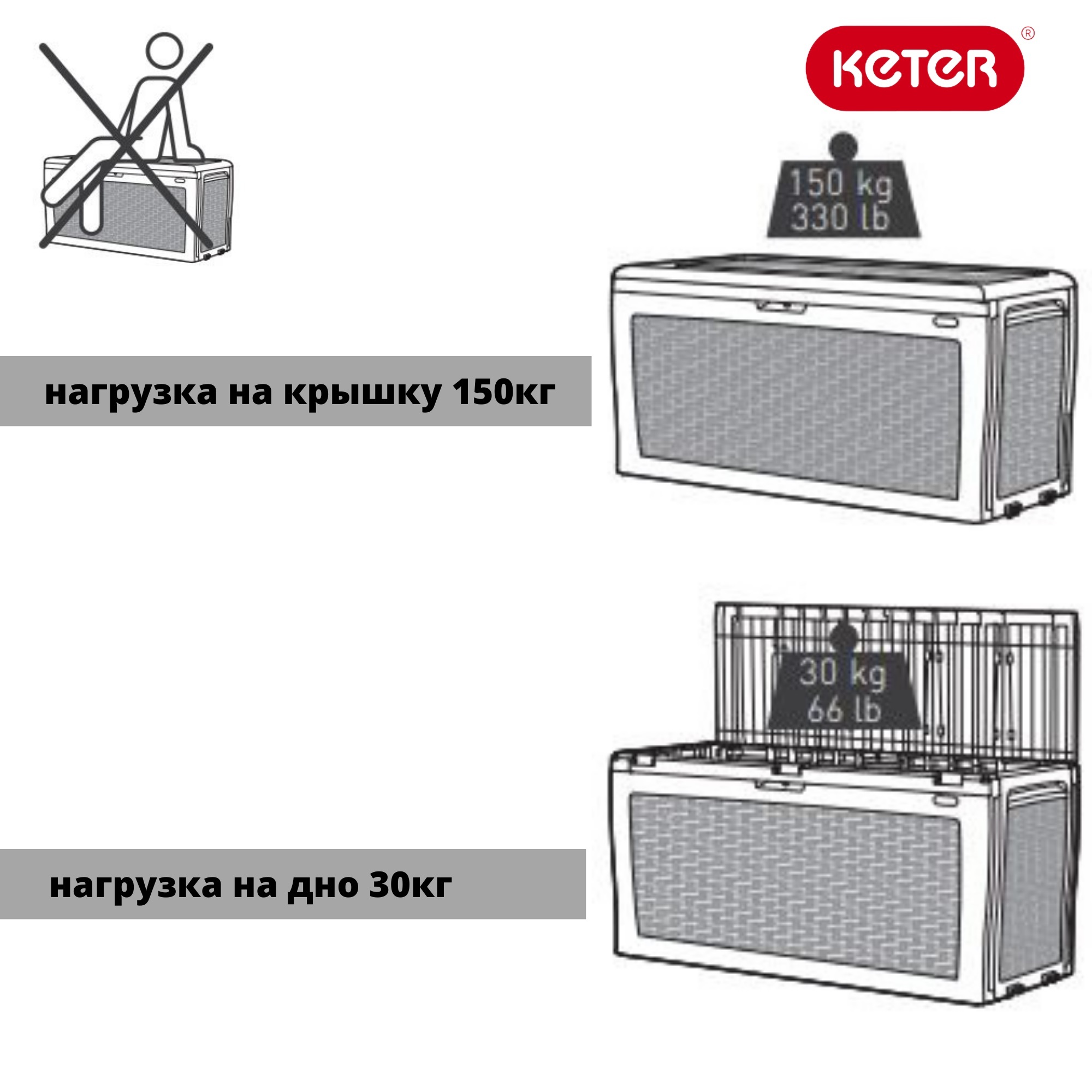 - Высокая прочность – сундук достаточно прочный для внешних нагрузок, можно использовать в качестве скамейки - выдержит двух взрослых!