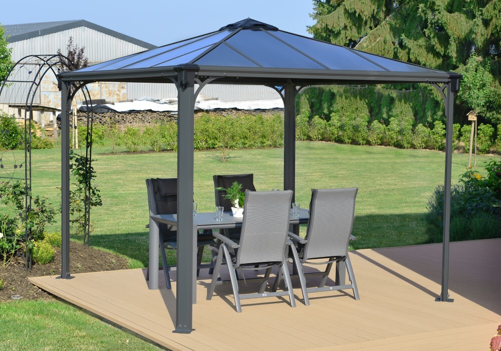 - В любое время года выполняет множество задач в самом сердце вашего сада: зона отдыха, барбекю, навес от солнца и дождя