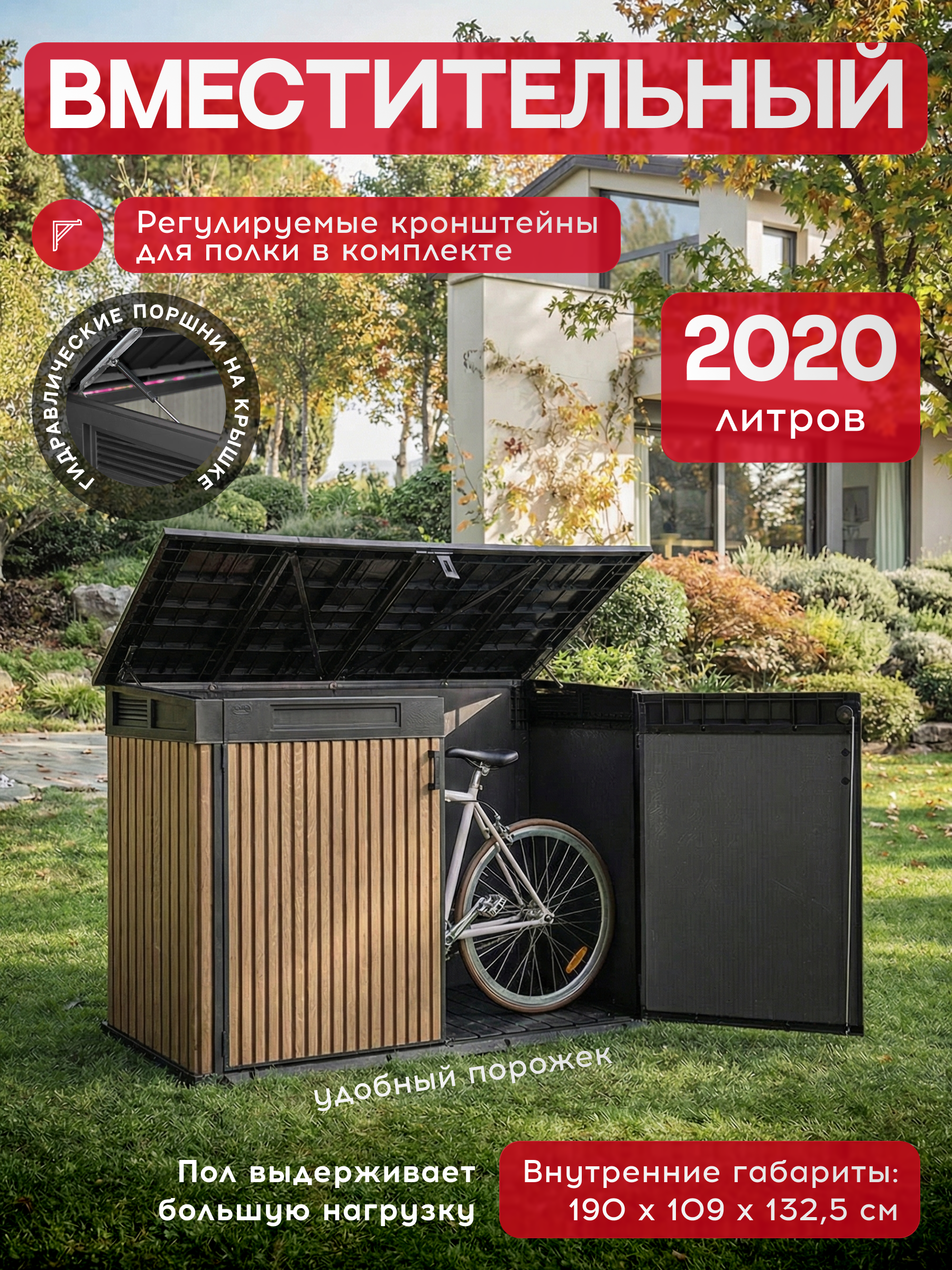 - Идеальное решение для уличного хранения садовых инструментов и оборудования, барбекю и аксессуаров или двух мусорных баков по 360 л (3-х по 240 л)